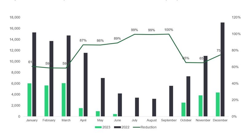 Thus, in 2023, we saw an impressive 70% drop in natural gas consumption in comparison with 2022. This translates to a remarkable reduction in our ‘Scope 1’ CO2 emissions by 184 tons.